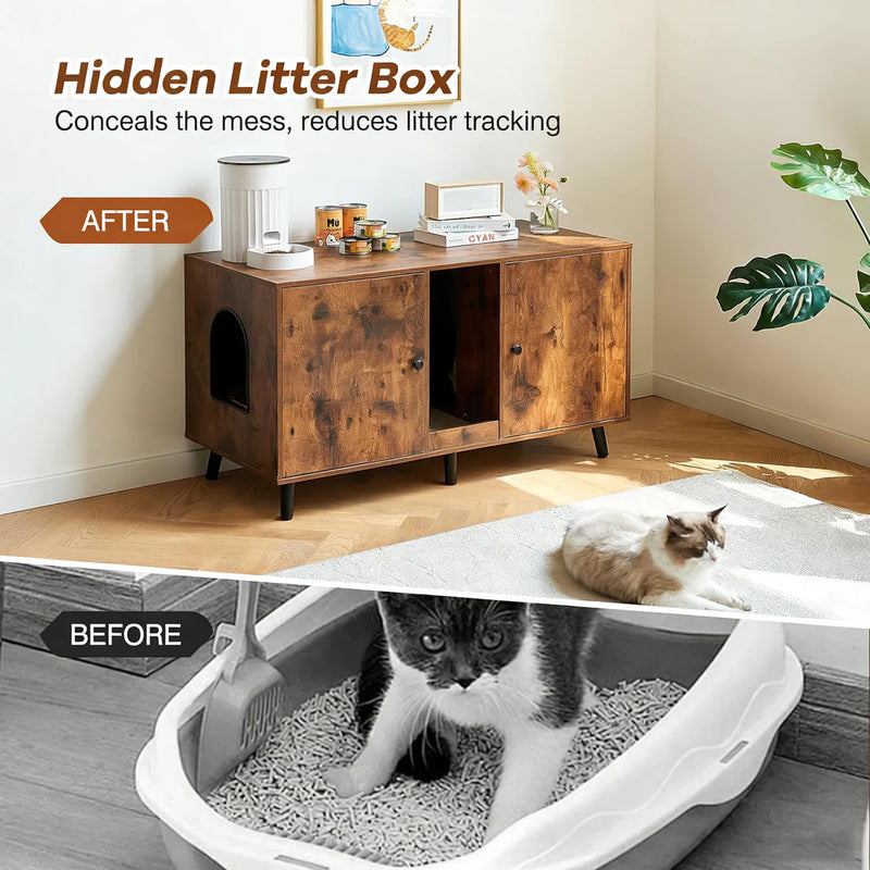 Cats get privacy, airflow, and easy access. The enclosed layout helps reduce litter mess and odor, so your home stays cleaner while your cat feels secure.