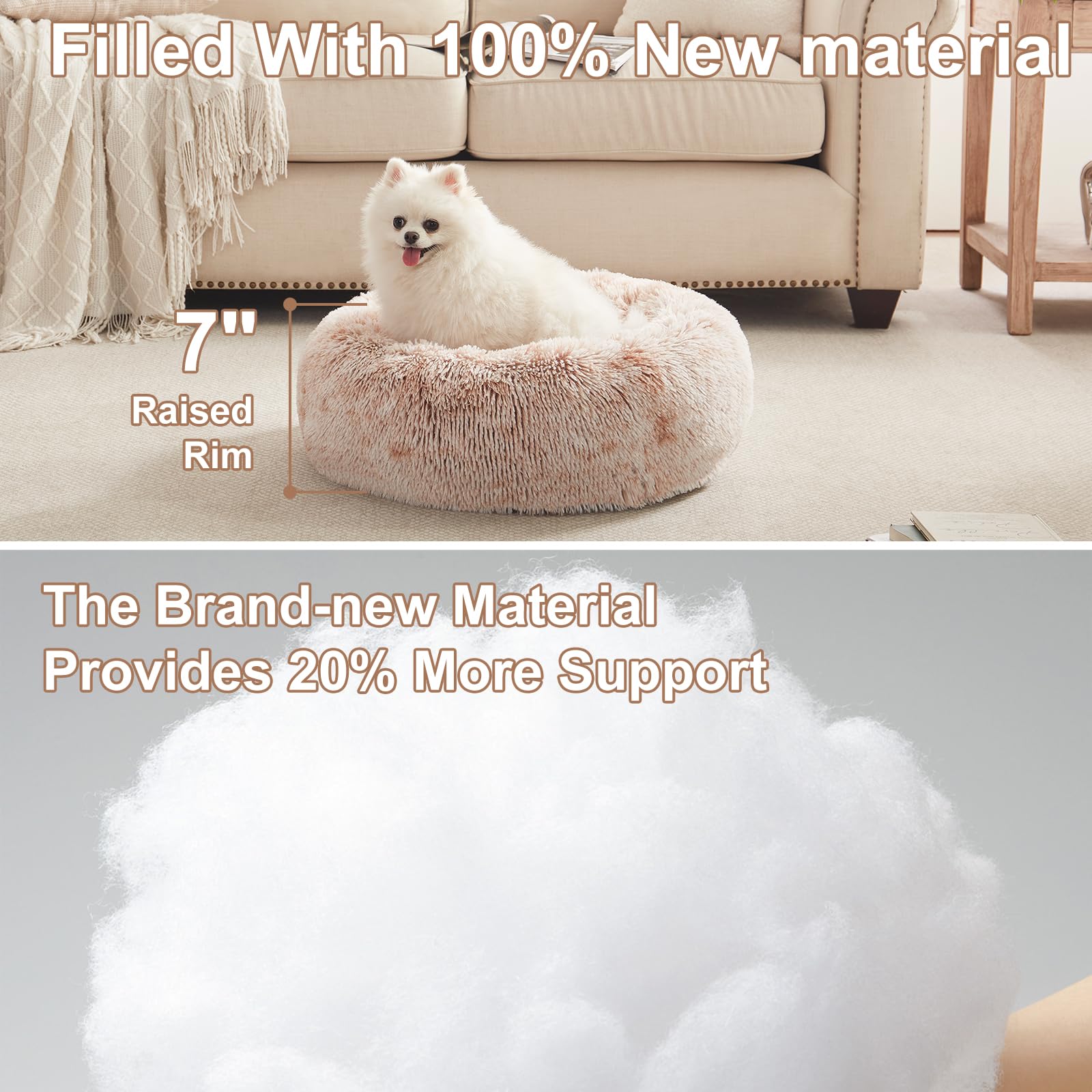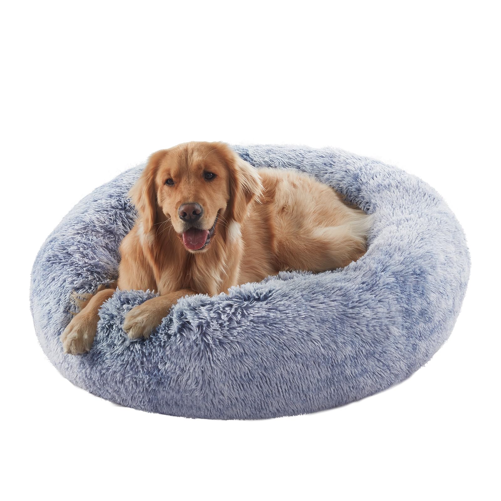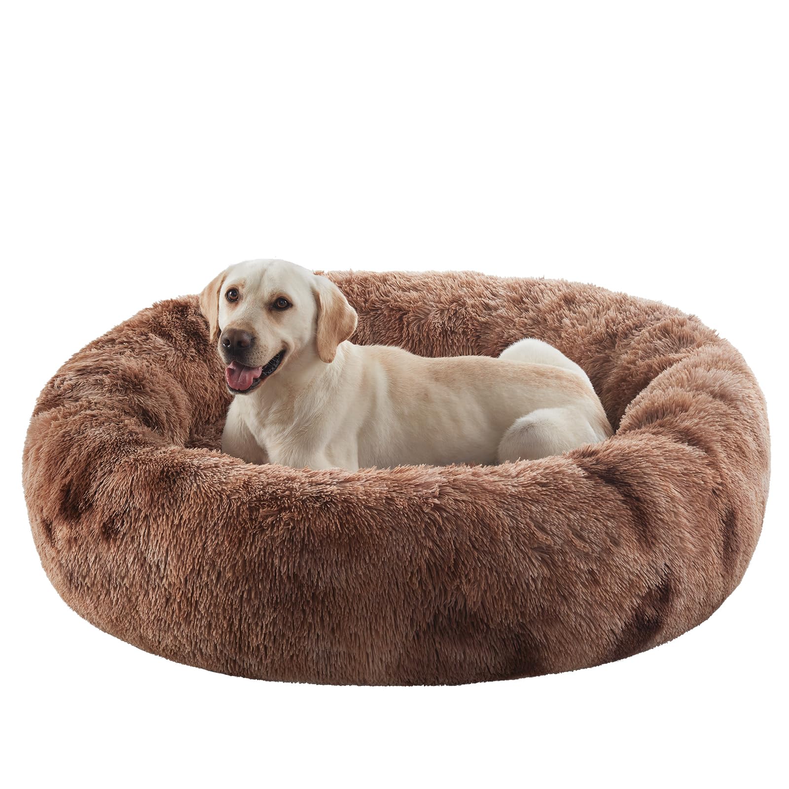 Our luxury circle Calming Dog Bed is designed for ultimate comfort and relaxation for your furry friend. Made with ultra-soft, plush faux fur, it provides a fluffy and supportive surface, ensuring your pet stays cozy and warm. The bed is filled with 100% new polyfill, offering excellent support and extra safety. With its removable cover that’s machine washable, cleaning is a breeze, keeping your pet’s bed fresh and hygienic. The nonslip bottom ensures it stays in place, no matter how active your dog gets. Available in a variety of sizes and colors offer a stylish, unique addition to your home. Treat your pet to the comfort they deserve!
