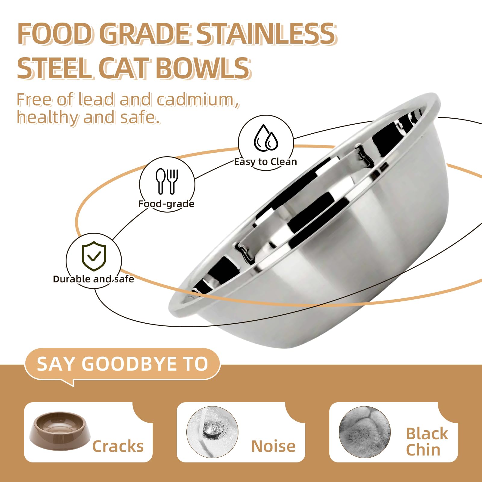 • 【Stylish and Easy to Clean】Made from durable stainless steel and paired with a modern stand, this cat bowl set looks great in any home. Both bowls are dishwasher safe and easily removable, making daily cleanup quick and convenient for cat owners.